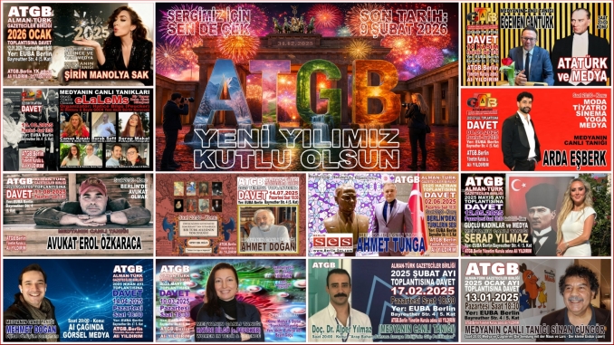 [ATGB.Berlin] Alman-Türk Gazeteciler Birliği OCAK AYI TOPLANTISINA DAVET Sizleri her ayın “İKİNCİ PAZARTESİ” günü (ATGB) Alman-Türk Gazeteciler Birliği tarafından gerçekleştirilen aylık olağan toplantımıza davet ediyoruz: 08.01.2024 Pazartesi günü, saat 18:30‘dan itibaren YENİ ADRESTE, (BAUHAUS’un YANI) [...]