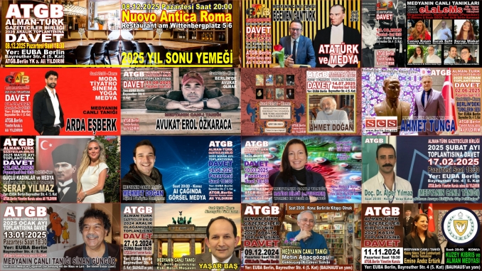 ATGB.Berlin ARALIK toplantımıza 08.12.2025 Pazartesi günü saat 18:30’da EUBA’da dernek çalışmalarımız ile başlıyoruz ve saat 20:00’den itibaren “Antica Roma Restaurant”ta Wittenberg Platz 5-6’da 2025 YIL SONU YEMEĞİMİZ ile devam ediyoruz… ARALIK toplantımızın müzikli davetini dinlemek [...]