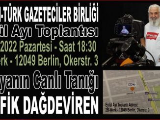 ATGB – ALMAN-TÜRK GAZETECİLER BİRLİĞİ KURULDU Bir süredir kuruluş çalışmaları sürdürülen Alman-Türk Gazeteciler Birliği (ATGB), örnek araştırmacı gazeteci yazar Uğur Mumcu’nun doğum günü olan 22 Ağustos 2022 Pazartesi günü Berlin’de internet ortamında gerçekleştirilen kurucular kurulu […]