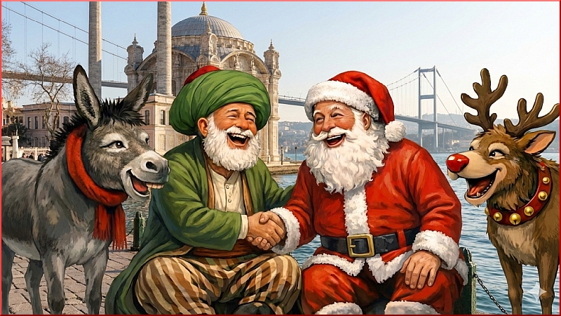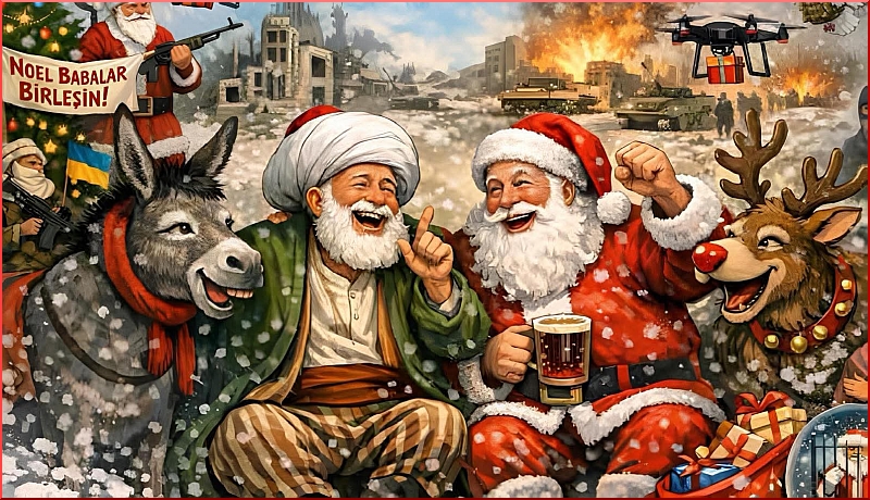Yıllardır Noel Baba (Santa Nikolaus) ile Nasreddin Hoca’nın yanyana olup çocuklara muziplikler yaptıkları, dünya ve insanlık sorunlarını tartıştıkları, birbirlerine takılıp atıştıkları mizahi bir çocuk oyunu planlamış ve hep bir sonraki Noel’e ertelemişimdir nedense. Hatta Hoca’nın eşşeği ile Noel Baba’nın geyyiği arasında bile bazı münasebetlerin son derece mizahi cevherler taşıdığını saptamış, konuya ilişkin epey notlar almıştım. Kimbilir belki bir gün, belki bir başka Noele bu isteğimi de gerçekleştirebilirim. Gerçi Nasreddin’i Berlin’de bir tiyatro festivalinde rocklu, rapli, arabeskli, ritimli bir oyunda canlandırmış, çocuklar arasında adım bir süre Nasreddin’e de çıkmıştı. Noel Baba’yı sahneye çıkarmak henüz kısmet olmadı ama, böyle olduğu halde defalarca Noel Baba kılığına girmişliğim oldu. Sokak ve ev tiyatrosu olarak diyelim.